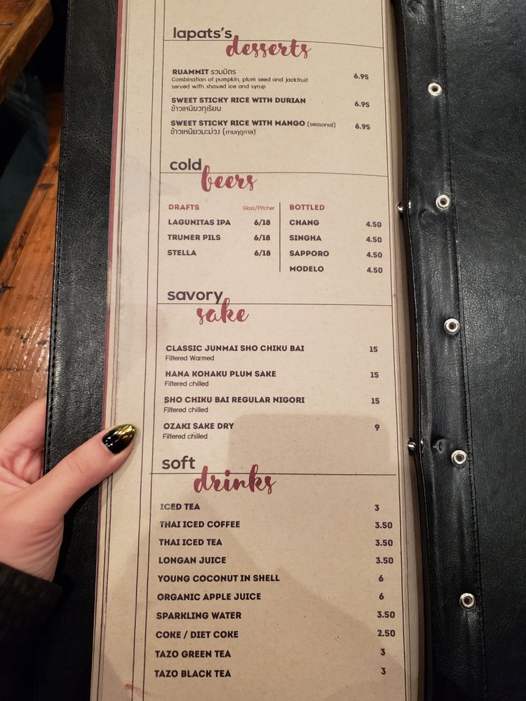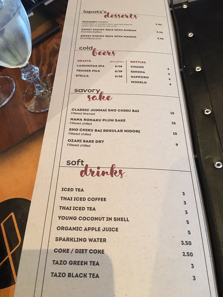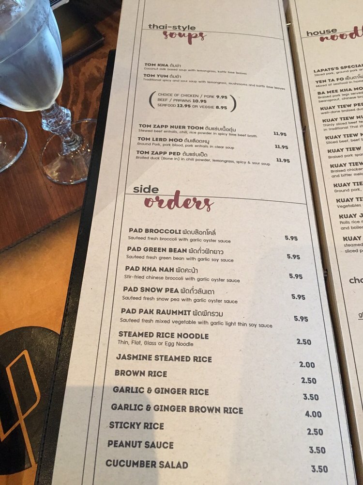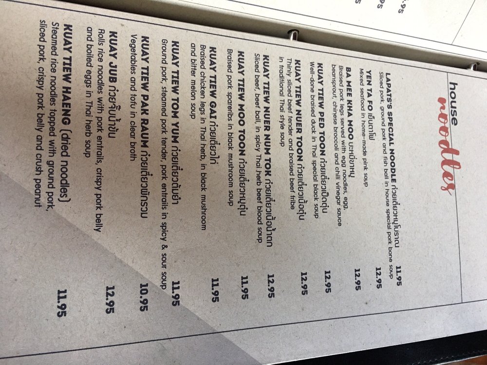 Lapats Thai Noodles Bar, located in San Francisco, offers a diverse menu of Thai noodle dishes, pan-fried noodles, and house appetizers. The house noodles, like Lapats's Special Noodle and Yen Ta Fo, showcase a blend of flavors and textures. The Pan-Fried Noodles, such as Pad See Ew and Pad Thai, are cooked to perfection with traditional Thai ingredients. House Appetizers like Grilled Beef Balls and Crab Rolls bring unique flavors to the table. Customers rave about the authenticity of the dishes, like the Kuay Tiew Haeng and Pad Gra Prow, which are renowned for their spiciness and richness. The cozy ambiance and friendly service add to the overall dining experience, making Lapats a go-to spot for flavorful Thai cuisine.